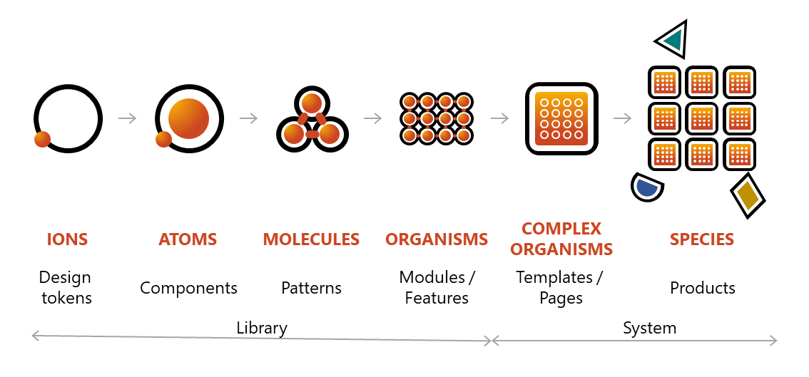 Quantum is designed based on the philosophy of atomic design. There are six levels in atomic design as shown in the graph below.